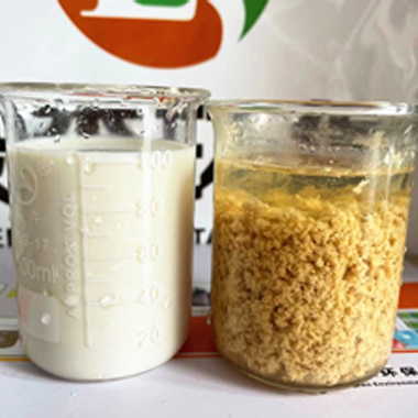 綠森環(huán)保技術(shù)團(tuán)隊?wèi)?yīng)某化妝品客戶要求上門技術(shù)服務(wù),現(xiàn)場給客戶廢水破乳劑中試。客戶廢水:沐浴露廢水,特點:含有乳化劑、增稠劑、抗氧化劑、防腐殺菌劑和香精色素等,廢水顏色:淺黃色。使用破乳劑破乳后廢水上清液清澈透明,如下圖       &nbs···